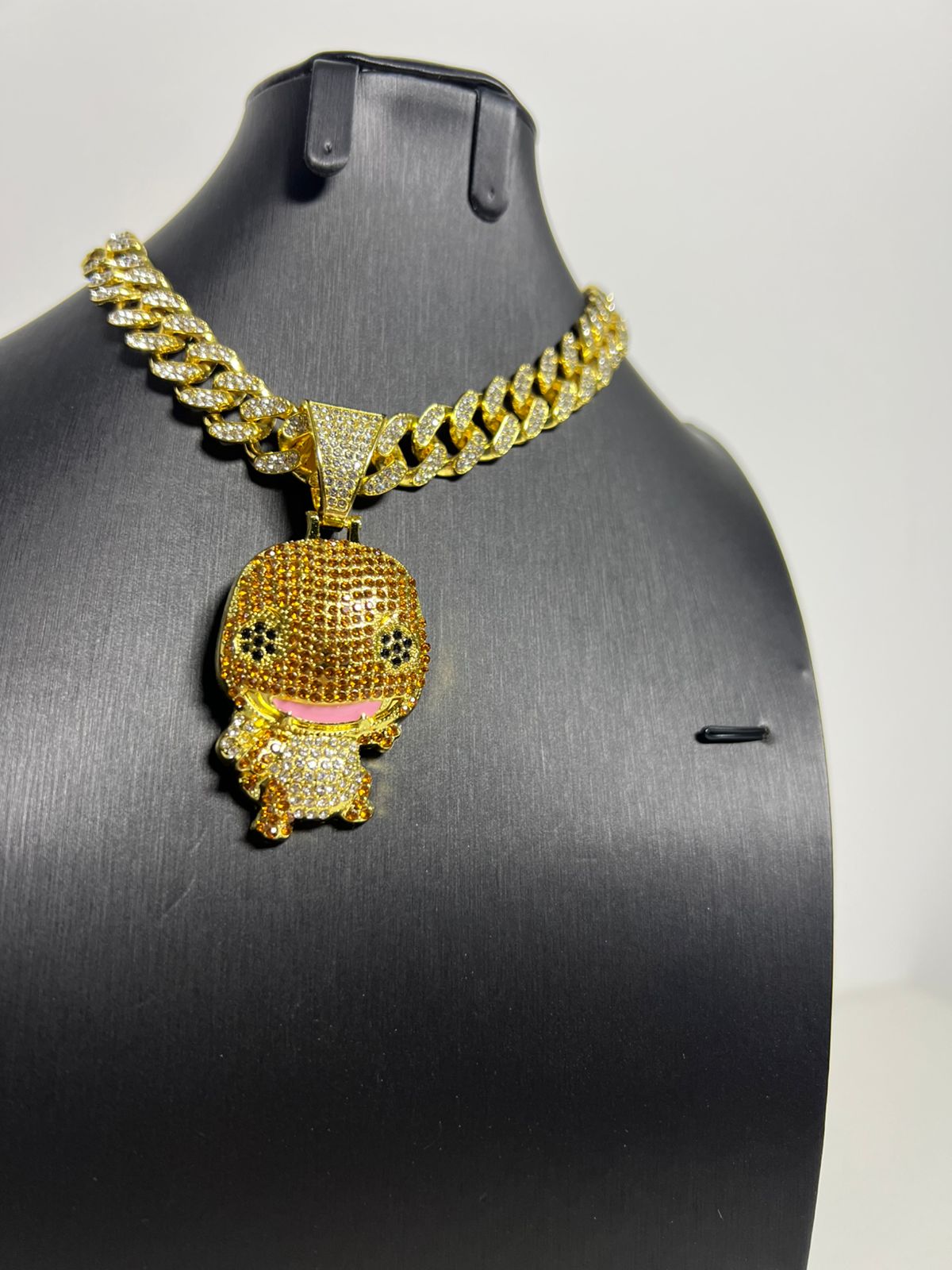 El brillo de las piedras es una cosa increíble, parece que llevaras focos en el cuello. El diseño del corazón roto con los labios rosados es único